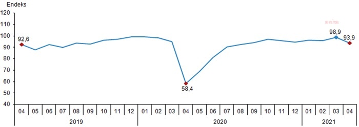 Türkiye İstatistik Kurumu (TÜİK) ekonomik güven endeksi verilerini açıkladı. Buna göre, ekonomik güven endeksi mart ayında 98,9 iken, nisan ayında yüzde 5,1 oranında azalarak 93,9 değerine düştü.