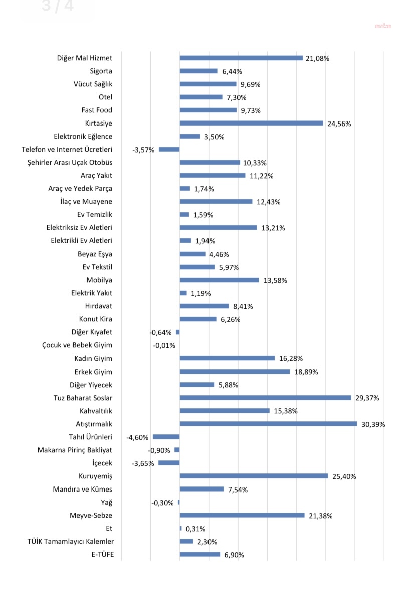 Tüketici sepeti ürün grubu sınıflamasına göre enflasyon oranı farklılıklar gösterdi. ENAGrup özellikli ürün grubu enflasyon hesaplamasına göre ise aylık en fazla düşüş yaşanan grup yüzde 4,60 ile tahıl ürünleri, en fazla yükseliş görülen grup ise yüzde 30,39 ile atıştırmalık ürün grubunda oluştu.