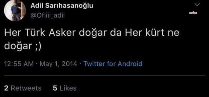 Adil Sarıhasanoğlu adına açılmış Twitter hesabından, 2013 ve 2014 yıllarında “Her Türk asker doğar da her Kürt ne doğar” ve “Olsa da bir Alevi kızı sevsek. Esmerinden taş gibi. Fantezimi hayata geçirecek yok mu bir kısrak” paylaşımları yapılmıştı. İstanbul Beyoğlu İlçe Sağlık Müdürü Adil Yetiş Sarıhasanoğlu’na ait olduğu öne sürülen hesaptan yapılan ırkçı ve cinsiyetçi paylamışlar, kamuoyunda büyük tepkiyle karşılanmıştı.