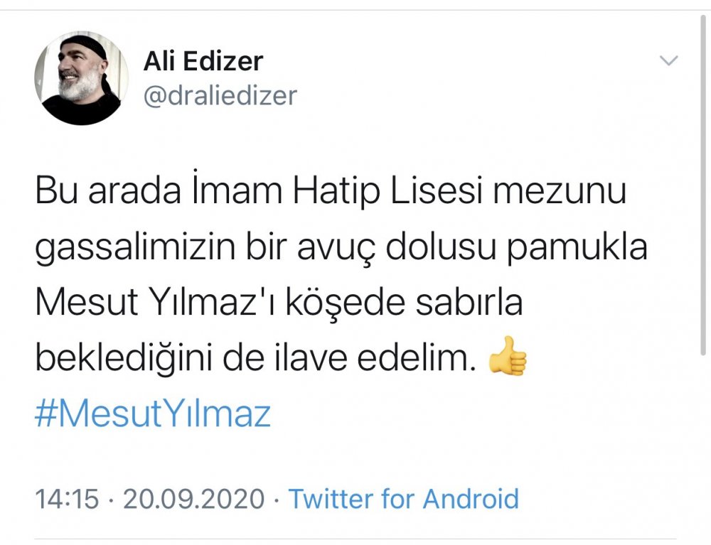 Suç duyurusu dilekçesinde Edizer’in paylaşımlarında “Mesut Yılmaz’ı imam hatiplilere cephe almış bir din düşmanı kisvesine bürümek sureti ile halkı Mesut Yılmaz ve dönemin devlet yöneticilerine karşı kin ve düşmanlığa tahrik ettiği” belirtildi.