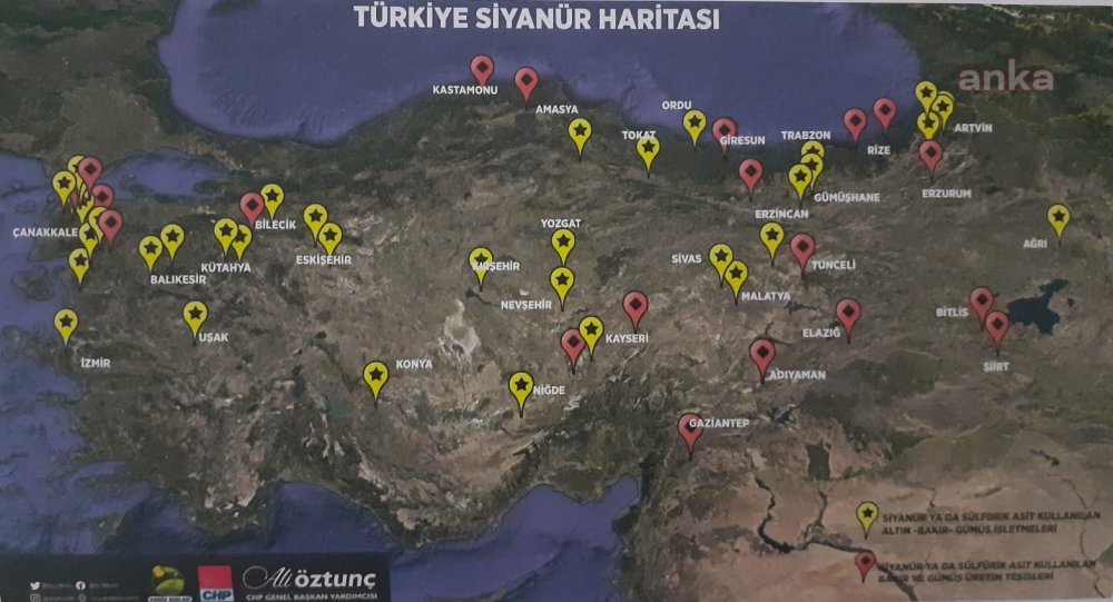 Siyanürle altın, bakır ve gümüşün ayrıştırıldığı işletmeleri ve üretim tesislerinin bulunduğu şehirleri gösteren 'Türkiye Siyanür Haritası'nın da bulunduğu raporda, CHP'nin çevre ile ilgili perspektifi ve önerileri de anlatıldı.