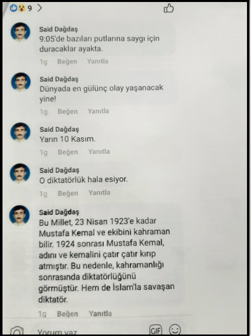 Said Dağdaş’ın, sosyal medya üzerinden 10 Kasım’da yaptığı paylaşımlar ise şöyle: