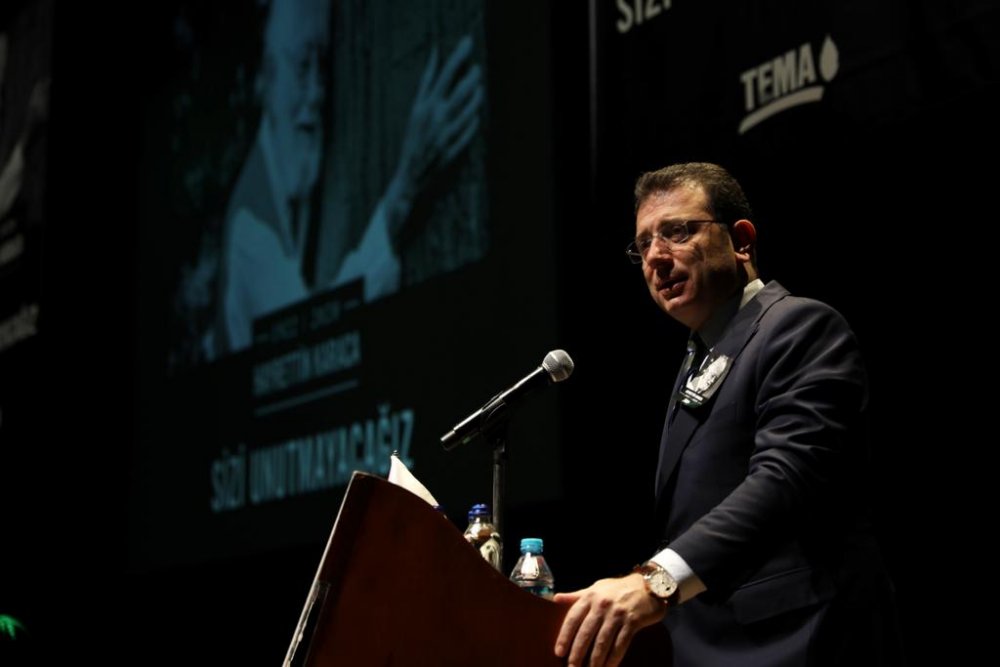 TEMA Vakfı yöneticilerinin ardından İmamoğlu söz aldı. Sözlerine, “Hepimizin başı sağ olsun” diyerek başlayan İmamoğlu, “Hayat geçici. Dünyada geriye hoş bir seda bırakma emelinin daha ötesinde bir değer yok. İyiliklerle anılmak, güzelliklerle hatırlanmak, yaptıklarımızla kalıcı olmak, her anını dolu dolu yaşamak çok önemli. Bence hayatın bu sırrını keşfedip ona layık bir yaşam oluşturmak… Hayrettin Karaca bu sırra erişen insanlardan birisi. Gerçekten ülkemizin çok önemli bir değerini, vicdanını kaybetmenin üzüntüsü içerisindeyim. Hepimiz bir ailemizin ferdini kaybetmiş gibi hissediyoruz. Bir isim bu kadar mı yakışır; ‘Toprak Dede’ ismi. Bunun ispatını ortaya koymuş, buna hayatını adamış bir insanı kaybetmenin derin üzüntüsünü yaşıyoruz” şeklinde konuştu.