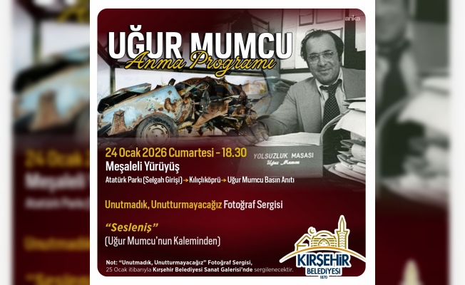 Gazeteci-yazar Uğur Mumcu, katledilişinin 33’üncü yılında Kırşehir Belediyesi tarafından düzenlenecek programla anılacak. Anma etkinliği, 24 Ocak 2026 Cumartesi günü gerçekleştirilecek. Belediye Başkanı Selahattin Ekicioğlu, Uğur Mumcu’nun anısına yayımladığı mesajda, Mumcu’nun demokrasi, özgürlük ve hukukun üstünlüğü ilkeleri doğrultusunda gazetecilik yaptığını belirtti.