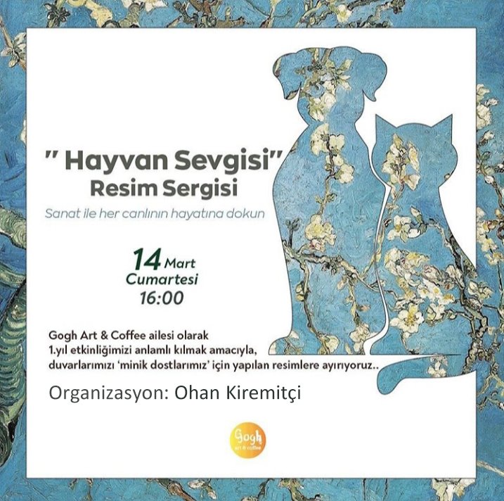 Ankara'da bulunan Gogh Art Coffee, 1. yılını anlamlı kılmak için bir farkındalık projesi gerçekleştiriyor. Bu proje kapsamında, 14 Mart Cumartesi günü duvarlarını ressamlara bırakıyor. Ohan Kiremitçi'nin organizasyonuyla gerçekleşecek olan sergide; ressamlar, eserleriyle katılım sağlayacak ve elde edilen gelir sokak hayvanları için kullanılacak.