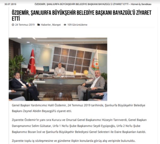 Şanlıurfa Büyükşehir Belediyesi’nde bazı daire başkanları ve yöneticilerin, Hür Belediye İş Sendikası üyesi belediye işçilerine istifa edip Hak-İş Konfederasyonu’na bağlı Hizmet-İş Sendikası’na geçmeleri yönünde baskı yaptıkları iddia edildi. Son bir hafta içerisinde 110 belediye işçisi, Hür Belediye İş Sendikası üyeliğinden istifa etmek zorunda kaldı. İstifaların Hizmet-İş Sendikası Kurucu ve Onursal Genel Başkanı, AKP eski Manisa Milletvekili Hüseyin Tanrıverdi ile beraberindeki Hizmet İş Sendikası heyetinin Şanlıurfa Büyükşehir Belediyesi’ni ziyaretiyle birlikte artması dikkat çekti.