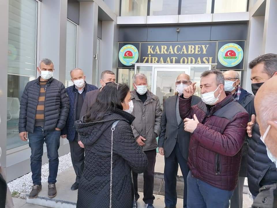 Karacabey’de tarımla geçinenlerin temel sorunlarının ülke genelindeki çiftçilerin de temel sorunu olduğunu vurgulayan Altaca Kayışoğlu, “Karacabey’de dinlediğimiz çiftçilerimiz dekar başına gübrede verilen desteğin 10 TL’den 20 TL’ye çıkarıldığını belirtiyorlar ama öte yandan da gübredeki artışa dikkat çekiyorlar. Bir torba gübre fiyatının 150 lira olduğunu belirtiyorlar. Hayvancılık yapanlar ise Tarım Bakanlığı’nın 10 yaş üzeri küpeli hayvanları 25 TL’lik destek primi nedeniyle bilgisayar başında öldürdüğünü, otlatma sırasında küpeleri düşen hayvanları prim kapsamı dışına çıkardığından yakınıyorlar. Çiftçimiz tek taraflı sözleşmeler nedeniyle fabrikaların inisiyatifine bırakılmaktan şikâyetçiler. Çift taraflı sözleşme konusunda attıkları adımların desteklenmesini bekliyorlar. Çiftçi, kendisini temsil eden, sorunlarıyla ilgili bakanlığın çalışmalarından memnun değil” diye konuştu.