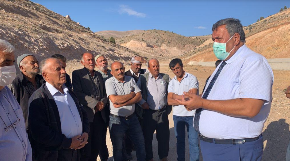 Gürer, ilçeye bağlı Halaç köyünde, yapımına 2017 yılında başlanan ve 3 yıl içinde tamamlanarak 2020’de hizmete gireceği açıklanmasına rağmen, aradan geçen 4 yıl içinde halen yüzde 40’lar seviyesinde kalan gölet alanında köylülerle bir araya geldi.