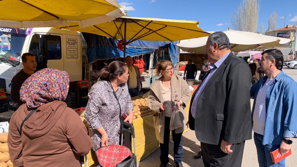 CHP Milletvekili Ömer Fethi Gürer, bir pazarda tezgah açan kadın esnafa da "Nasıl patlıcan alabiliyor mu millet?" diye sordu. Pazarcı Kadın, "Valla almıyorlar. Daha yeni acı bibere 100 lira dedim. Adamın kafası döndü, nereye gittiğini bilmiyor. 'Bana 10 liralık patlıcan ver, orucum.' diyor. Tarttım ver bakalım 1 patlıcan ne kadar geliyor. 150 gram 9 lira." derken, Gürer başka bir pazarcı esnafının tezgahında satılan fasulyeyi sordu. "Taze fasulye kilosu 100 lira. Fasulyeyi alan oluyor mu?" dedi. Pazarcı da "Alıyorlar ama yarım kilo alıyorlar." yanıtını verdi.