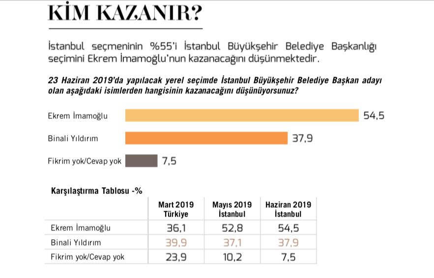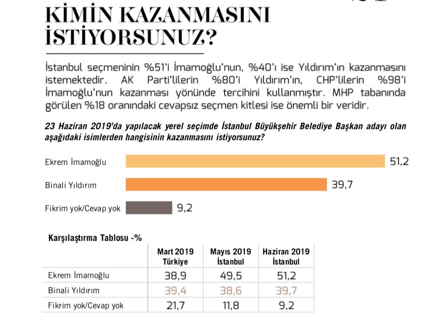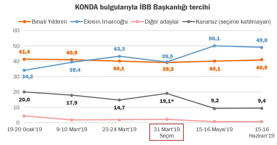 AKP’nin başvurusuyla YSK tarafından iptal edilen İstanbul Büyükşehir Belediye Başkanlığı seçimi için artık son günler. 23 Haziran’da yapılacak seçim için anket şirketleri çalışmalarını sürdürüyor. Dün Türkiye’nin en güvenilir araştırma şirketlerinden KONDA’nın yaptığı araştırmanın yayımlanmasının ardından bugün de yeni anket sonucu Metropoll tarafından kamuoyuyla paylaşıldı.