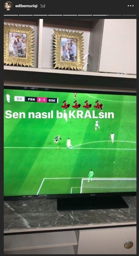 Kocası Vedat Muriç'in attığı ilk golden sonra "Kafana kurban" notuyla paylaşım yapan Edibe Muriç, Vedat'ın ikinci golünün ardından ise "Sen nasıl bir KRALsın" notuyla bir paylaşımda bulundu.