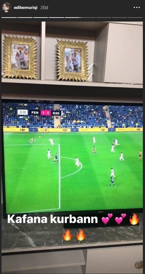 Süper Lig'in 14. haftasında sahasında Gençlerbirliği'ni konuk eden Fenerbahçe'de golcü futbolcu Vedat Muriç'in eşi Edibe Muriç, karşılaşma devam ederken paylaşımlarda bulundu.