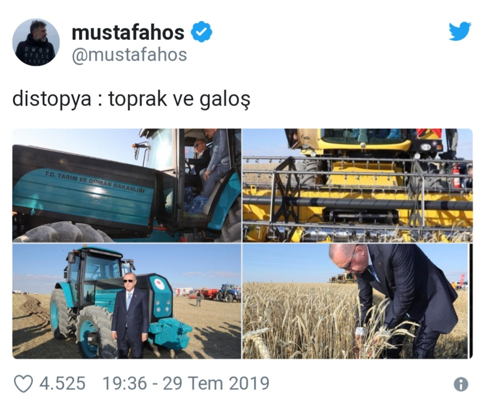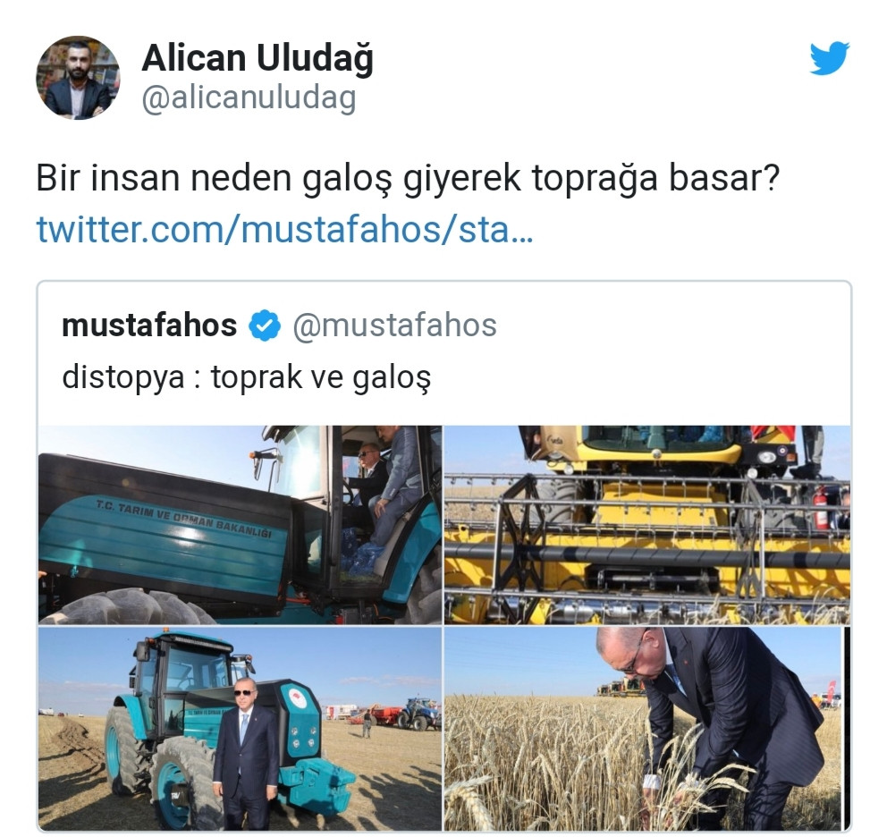 Fotoğrafta Erdoğan’ın tarlada galoş giydiği görülürken, konuyla ilgili Ekşi Sözlük’te başlık açıldı. Fotoğraf Twitter’da da çokça konuşuldu.