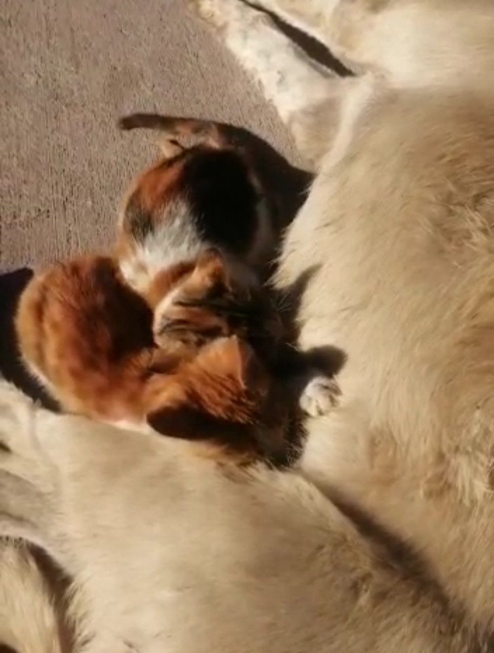 Tren İstasyonundaki Köpek, Kedilere Annelik Yapıyor