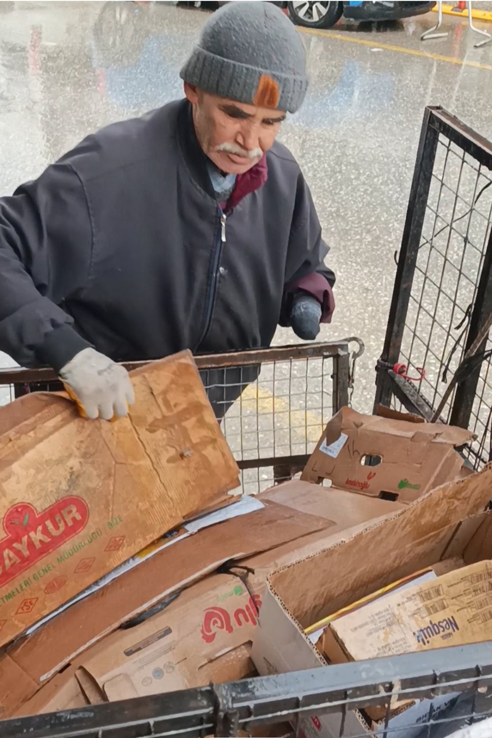 20 bin lira maaş alan emekli 10 bin lira ev kirası verirse geriye ne kalır? 10 bin lira ile nereye kadar geçineceksin? 5 nüfus bakıyorum ben şu anda. Sabah 08.00'den akşam 21.00'e kadar devam ediyor. Kilo olarak satıyorum. Haftada 5 bin lira para alsam, bunun yarısı mazota gider. 2 bin 500 lira para için bir hafta yağmurun altında dolaşıyorum, hepsi bu. Karton fiyatları da zaten düşük. Tek elle zor oluyor tabii ama mecburum. 10 yıldır aşağı yukarı kağıt toplama işi yapıyorum.
