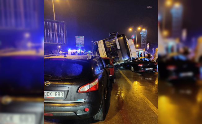Ankara'da EGO otobüsünün, seyir halindeyken karşı şeride geçerek devrilmesi sonucunda 14 kişi yaralandı.