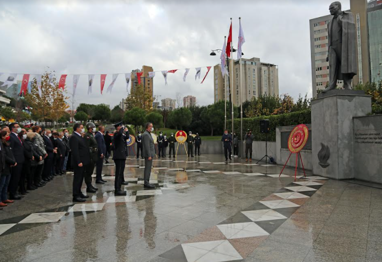 Cumhuriyet Meydanı’nda düzenlenen anma töreni; Ataşehir Kaymakamlığı, Garnizon Komutanlığı ve Ataşehir Belediye Başkanlığı’nın Atatürk Anıtı’na çelenk koyma sunumuyla başladı.