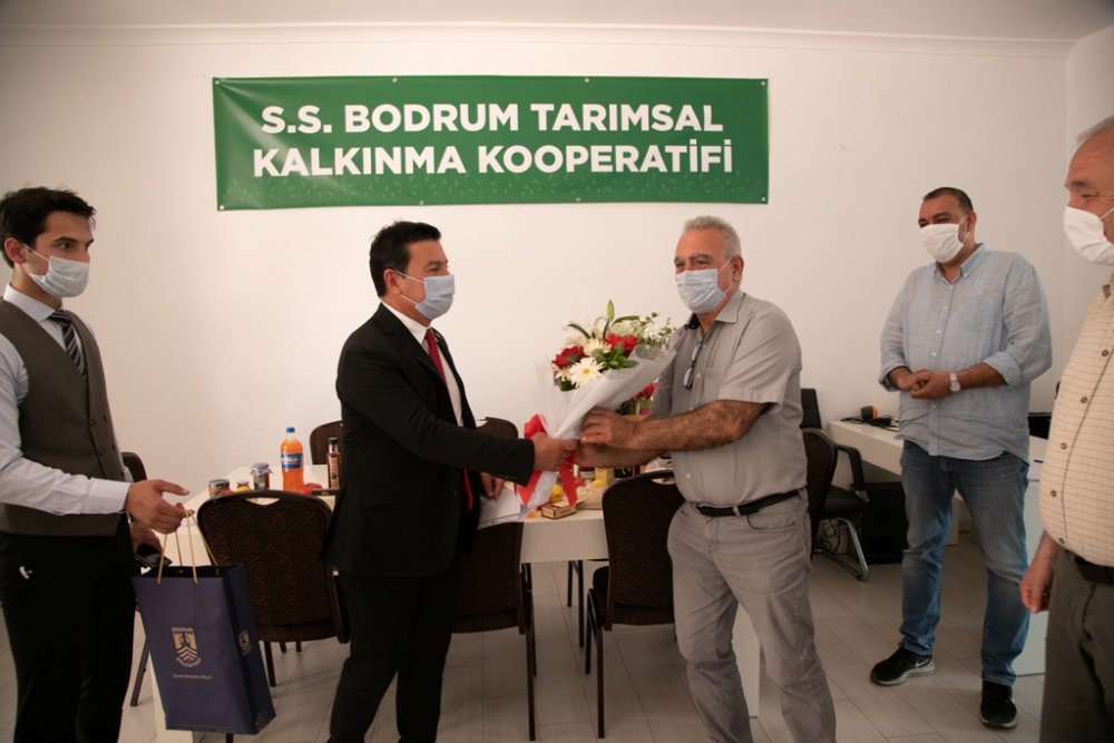 Bodrum Belediye Başkanı Ahmet Aras, Başkan yardımcıları Emel Çakaloğlu, Tayfun Yılmaz ile birlikte 14 Mayıs Dünya Çiftçiler Günü dolayısıyla Bodrum Tarımsal Kalkınma Kooperatifini ve Bodrum Ziraat Odasını ziyaret etti. Ziraat Odası Başkanı Mehmet Melengeç ve yönetim kurulu üyeleri ile bir araya gelen Başkan Aras, Bodrum Belediyesi olarak tarıma verdikleri önemi anlatarak yerel değerlere sahip çıkmanın önemine değindi.