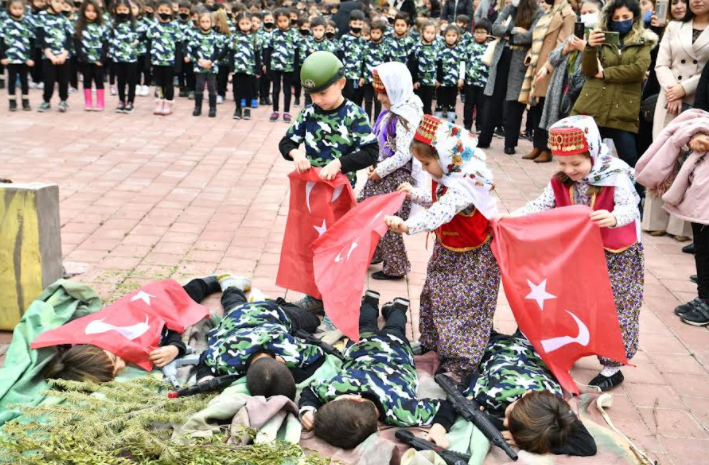 Konuşmaların ardından kreş öğrencilerinin Çanakkale konulu mini gösterisi büyük beğeni topladı. Gösteri sırasında duygulanan Başkan Soner Çetin gözyaşlarına hakim olamadı. Daha sonra Başkan Soner Çetin çocuklarla birlikte Çanakkale Türküsünü söyledi ve ardından Diorama Salonu gezildi.