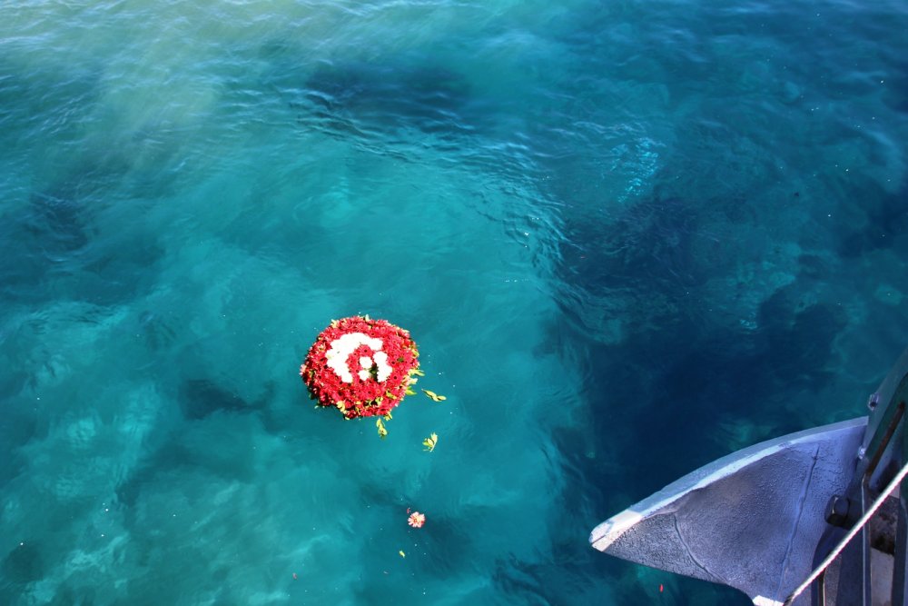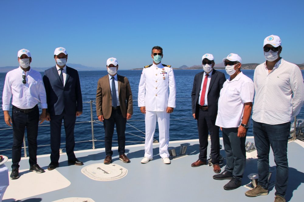 TCSG 101 No’lu bot ile Kumbahçe açıklarına gelen heyet deniz şehitleri anısına çelenk bıraktı.