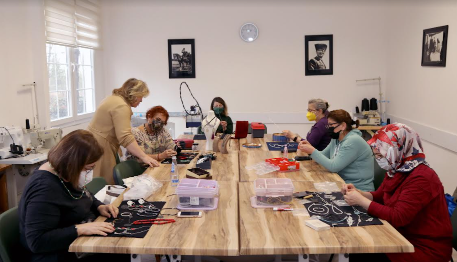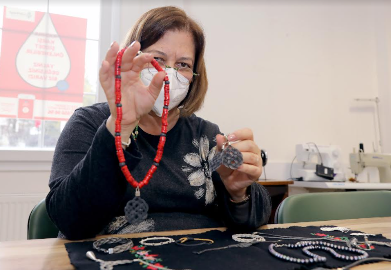 Kazaziye Öğretmeni Fatma Ercan eşliğinde saç teli inceliğinde 0,08 micron gümüş ipliği işleyerek tarihi binlerce yıl öncesine dayanan kazaziye sanatını canlandıran kursiyerler, hobi olarak başladıkları derslerde aşama kaydedince kazanç kapısı olarak da değerlendirdiler. Önce yakın çevre ve akrabalardan oluşan müşteri portföyünün zaman içerisinde genişlediğinden söz eden kursiyerler internet üzerinden yurtdışına da satış gerçekleştirmeye başladılar.