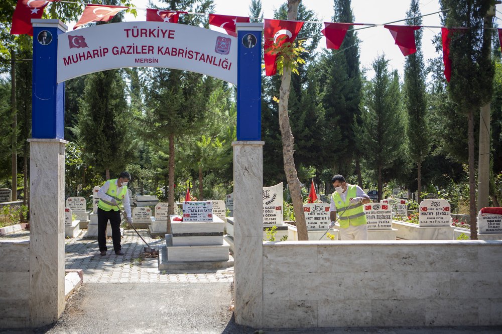 Mersin Büyükşehir Belediyesi, bayram temizliği çalışmalarını 13 ilçenin tamamındaki toplam 4 bin 200 mezarlıkta sürdürüyor. Büyükşehir, 31 Temmuz-3 Ağustos tarihleri arasındaki Kurban Bayramı öncesi mezarlıklarda temizlik, budama ve bakım çalışmalarını yoğunlaştırdı. Vatandaşlar, Arife Günü sabah saat 08.00’den itibaren ebediyete uğurladıkları yakınlarının mezarlarını ziyaret edebilecek.