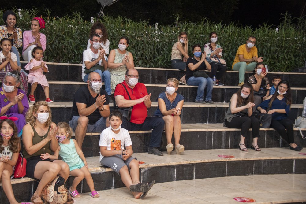 Yenişehir İlçesi’nde Kültür Park içinde yer alan amfi tiyatroda sosyal mesafe kurallarına göre oturan Mersinliler, tiyatro sanatçısı Metin Zakoğlu’nun bir anlamda kabare kültürünü yansıttığı “Komik Gazino” isimli gösterisinde hem 80’ler ve 90’ların unutulmaz şarkılarını dinledi hem de gösteriye dahil oldu. İnteraktif geçen gösteride tiyatrocuyla diyalog halinde olan Mersinliler, kimi zaman kahkahaya boğuldu kimi zaman duygulandı.