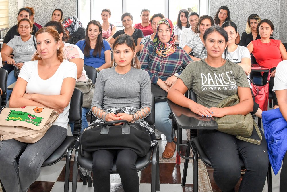 Eğitimler kapsamında kadınlar, iş sağlığı ve güvenliği uzmanları ile iş yeri hekimi tarafından, risk etmenlerinden iş ekipmanlarının güvenli kullanımına kadar pek çok alanda bilgilendirildi.