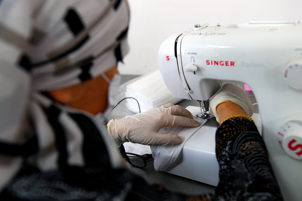 Gönüllü kadınlar halkın sağlığı için dikiş makinasının başına geçti