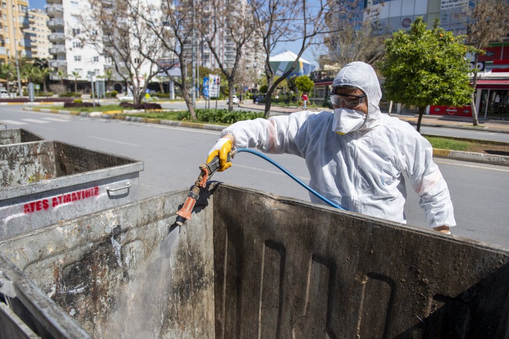 Hastanelerden AVM’lere, çöp kutularından trabzanlara her nokta özenle dezenfekte edildi