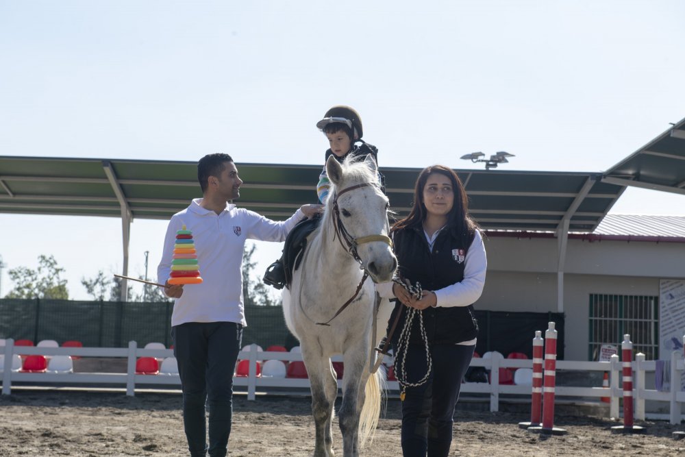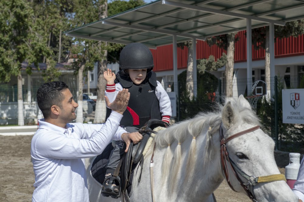Mersin Büyükşehir Belediyesi, özel çocukların rehabilitasyonu için Türkiye Jokey Kulübü ile işbirliği yaparak atla terapi programı uyguluyor. Programa katılan özel çocuklar, Adana Hipodromu’nda uzman fizyoterapist ve görevliler eşliğinde ata biniyor. Özel çocukların rehabilitasyonunda önemli bir rol oynayan etkinlik, özel çocukların dikkat ve özgüvenlerinin gelişmesine yardımcı oluyor