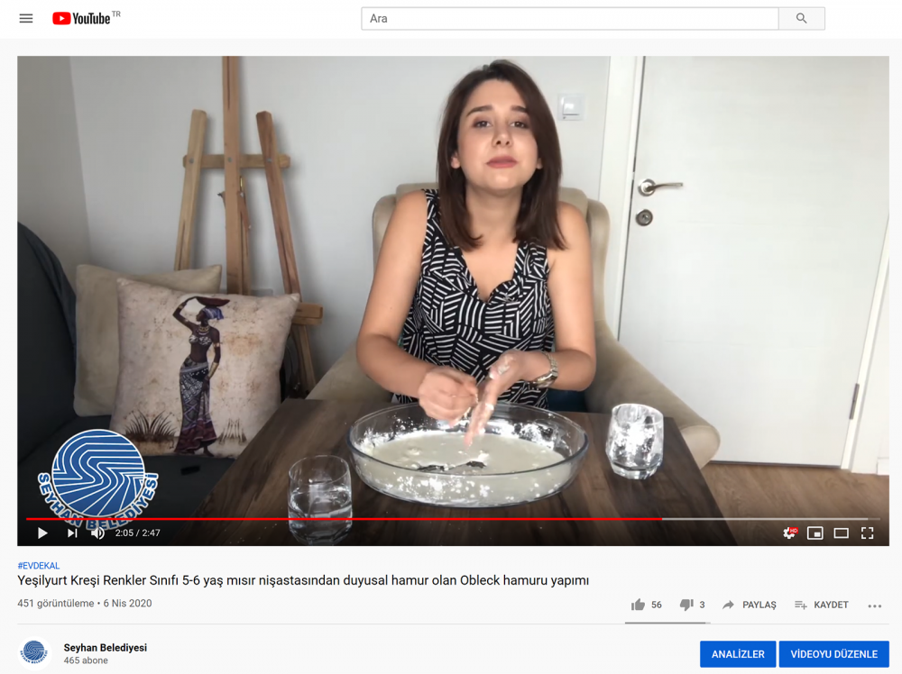 Seyhan Belediyesi Şehir Tiyatrosu oyuncuları ile Seyhan Belediyesi Spor Müdürlüğüne bağlı Beden eğitimi öğretmenleri tarafından yapılan çekimler Youtube kanalından takip edilebiliyor. Ayrıca Seyhan Belediyesi Kreş Müdürlüğü, okulların tatil edilmesi nedeniyle çocukların uzaktan eğitim sistemiyle günlük olarak eğitimlerine devam edilmesini sağlıyor. Milli Eğitim Bakanlığının okul öncesi programı çerçevesinde, Seyhan Belediyesi Kreş Müdürlüğü öğretmenleri tarafından 3-4 ve 5 yaş grubu öğrenciler için; içerisinde drama, bilimsel deneyler, kavramlar, resim, hikaye, parmak oyunları, şarkılar, müzik, spor aktiviteleri ve eğlenceli oyunların yer aldığı videolar hazırlandı. Minikler kendileri için hazırlanan uzaktan eğitim videolarını “Seyhan Belediyesi” youtube kanalından düzenli olarak takip edebiliyor.