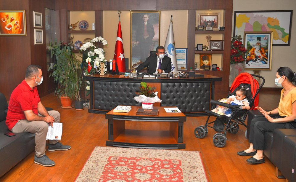 SMA hastası çocukları 2 yaşındaki Eliz Mira’nın annesi Yonca ve babası Serkan Mert, tedavi için başlatılan kampanyaya destek olan Çukurova Belediye Başkanı Soner Çetin’e teşekkür ziyaretinde bulundu.